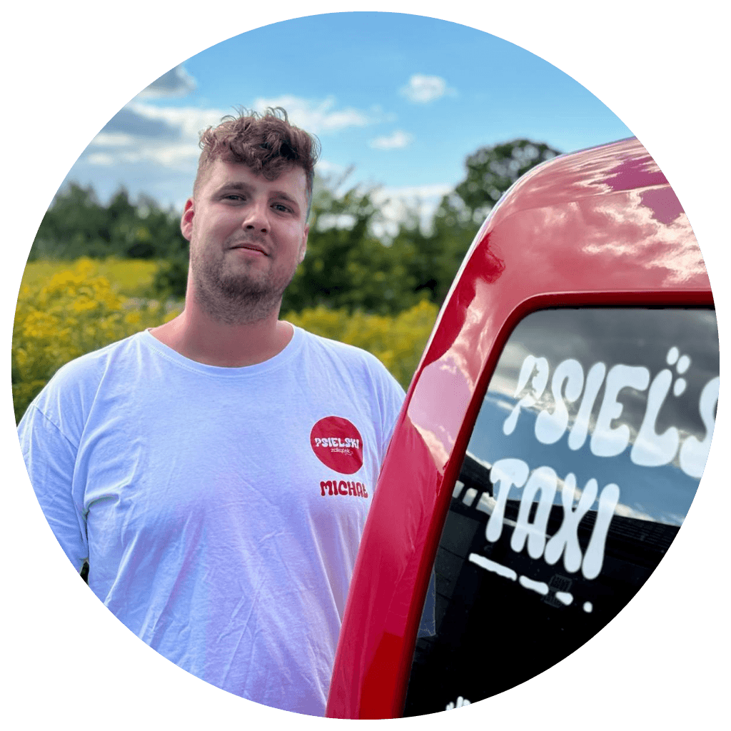w praktyce? Za kierownicą naszej taksówki dla psów i kotów zasiada Michał, doświadczony kierowca